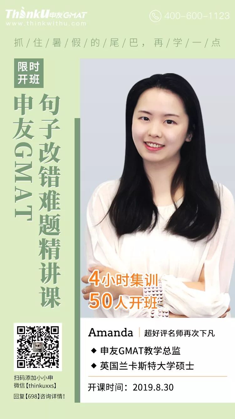 为此申友GMAT特意在月末限时开课,邀请申友殿堂级GMAT教师Amanda来拯救考G党!
