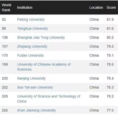 然而中国大学今年的成绩非常出人意料的出现跳水现象,我们引以为傲的清华北大,几乎被抛出百名榜。