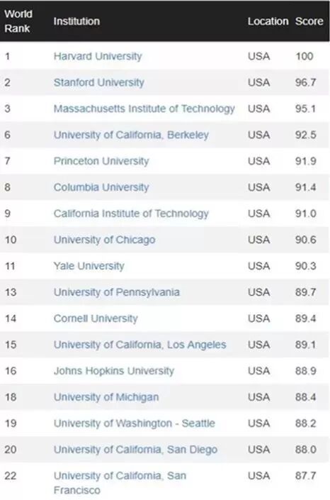CWUR从2012年来每年公布一次全球大学排行榜,与其它榜单不同的是,这份榜单更注重大学的教育质量,就业情况,研究成果以及被引用的数量等方面,并不完全依赖大学自己提供的调查数据。相对来说,这份数据比较适合追求实用性的同学参考。
