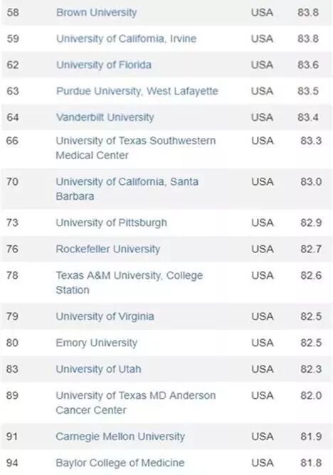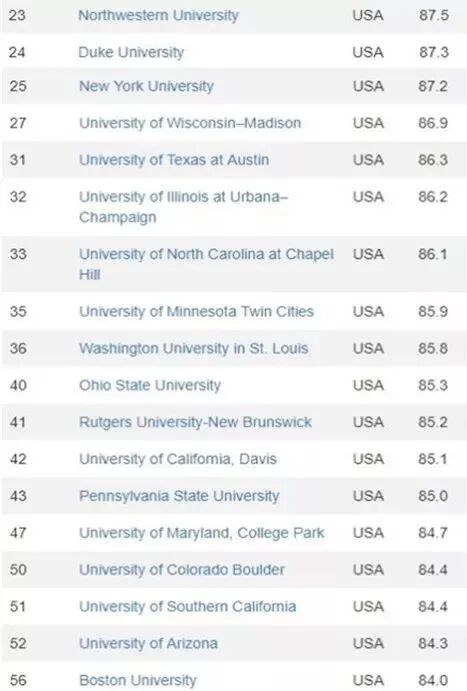 美国51间大学进入百名榜