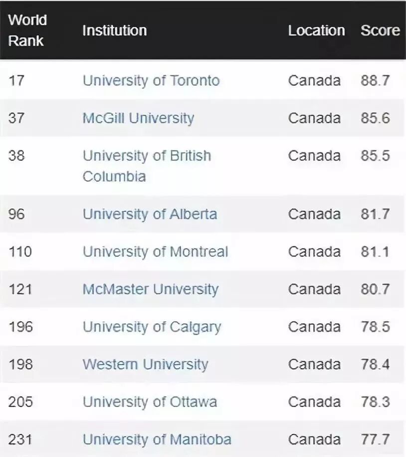 加拿大全国前十名大学
