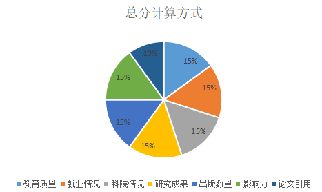 所有大学的总分组成包括:教育质量,就业情况,教师素质,研究成果,出版数量,影响力以及论文引用情况。