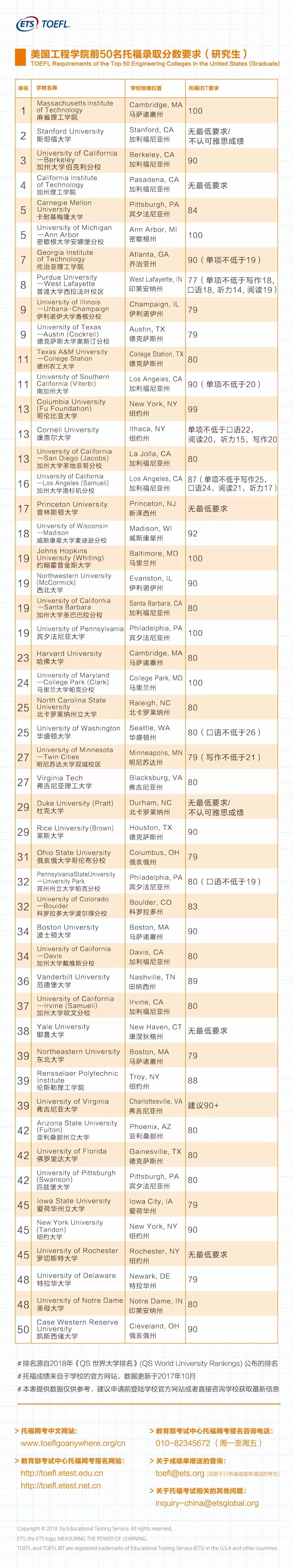 近日,托福官方发布了QS2018世界大学排名中美国百强大学的托福成绩要求,完整版分享给大家,希望对同学们留学择校和托福备考有所帮助。
